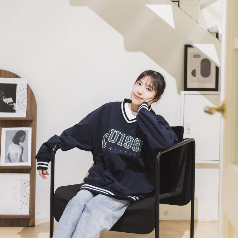 【早鳥預購,11/26陸續出貨】CCU美式電繡滑面V領大學T_深藍