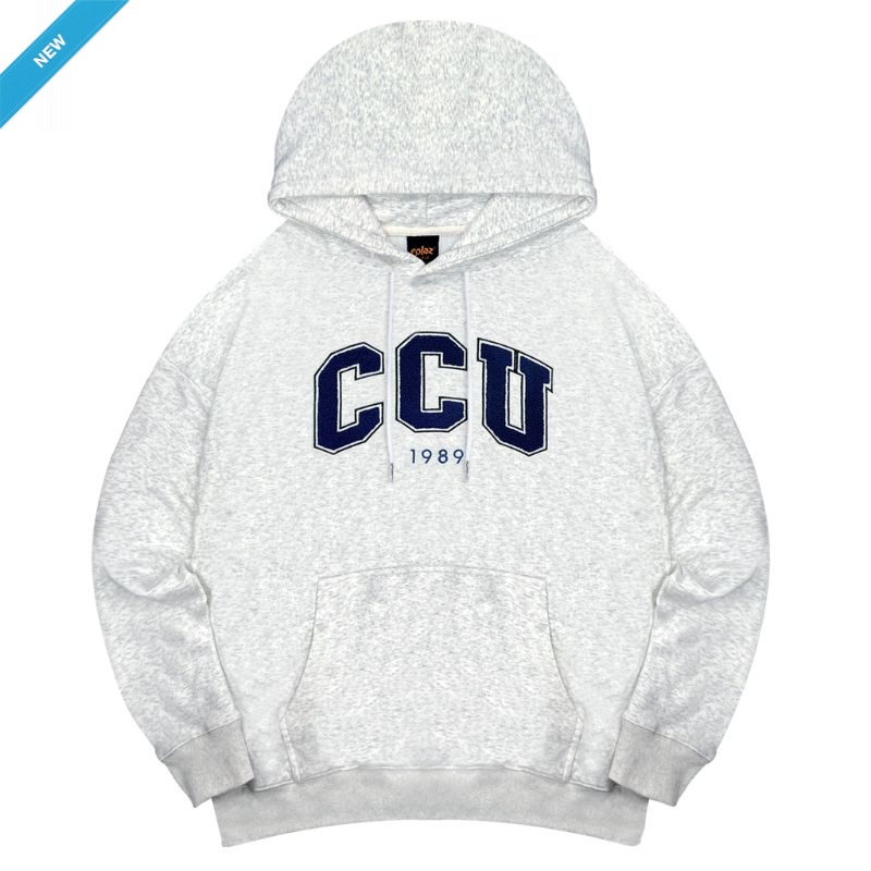 【早鳥現貨,售完預購】CCU立體毛巾繡落肩帽T_麻花白